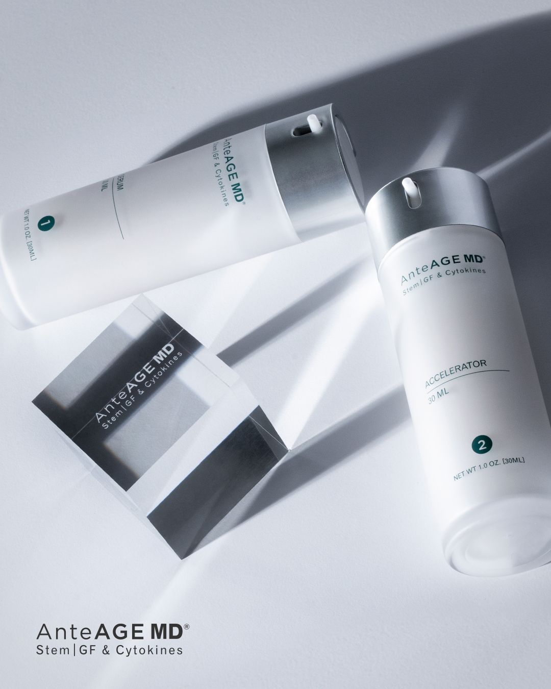 The AnteAGE MD® two-step System harnesses the power of stem cell growth factors and cytokines to prevent and actually reduce the appearance of skin aging. This system is everything you need in just two steps for healthy and glowing skin.